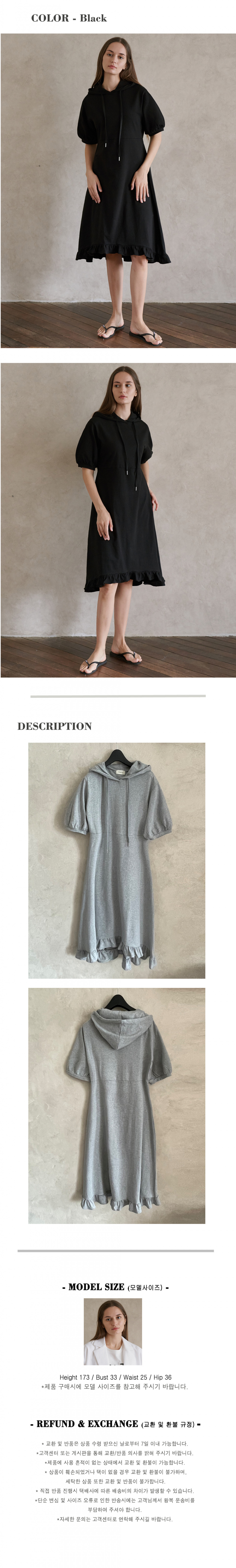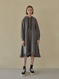 Hooded Frill Long Dress - Charcoal (기모버젼)