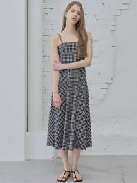 Check Waist string dress - BLACK