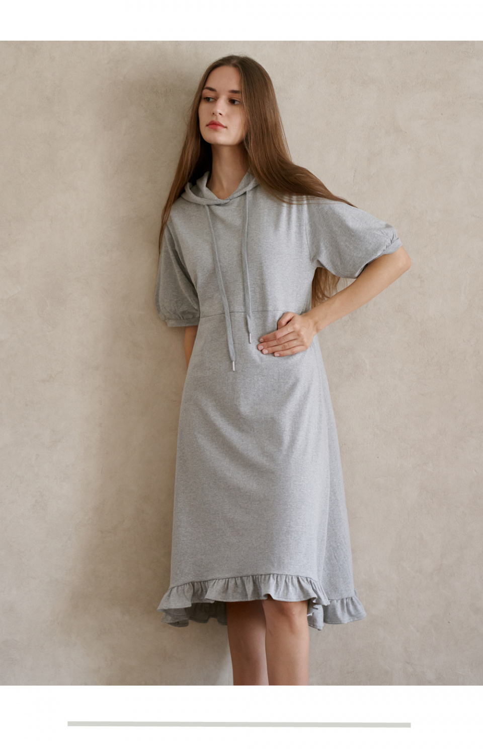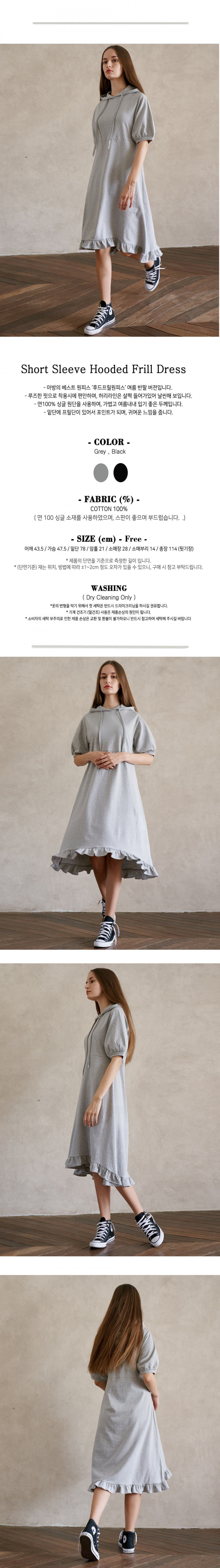 Short Sleeve Hooded Frill Dress- Grey