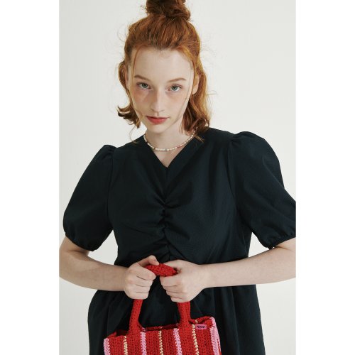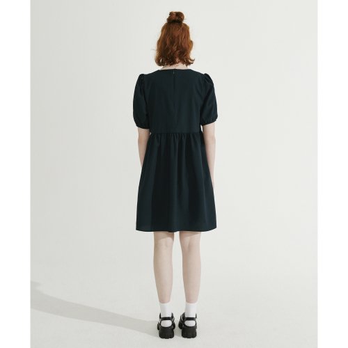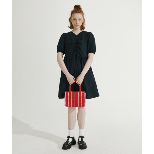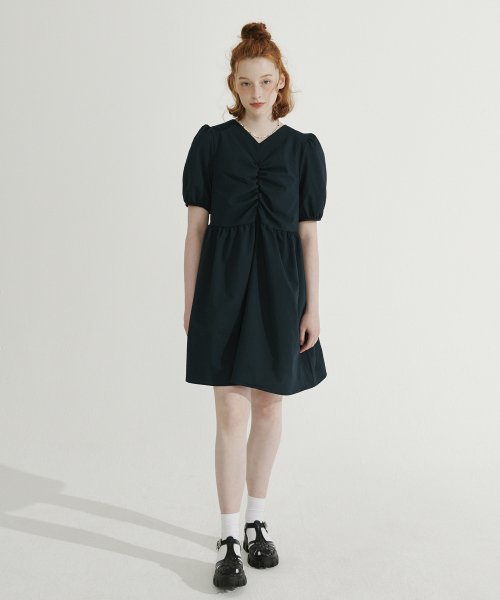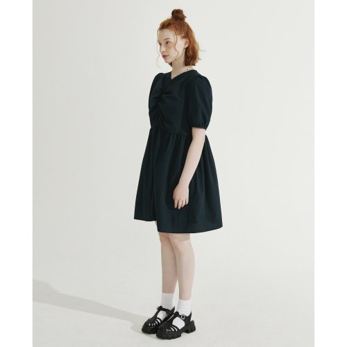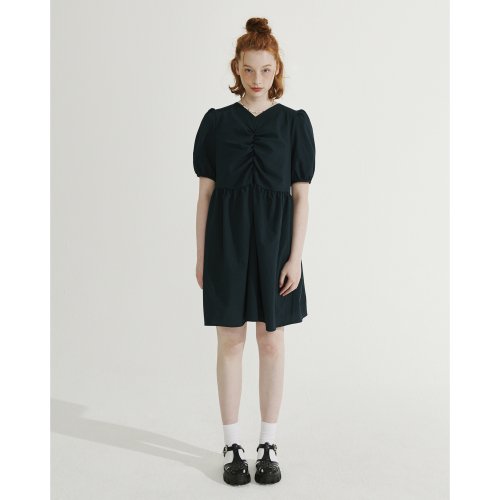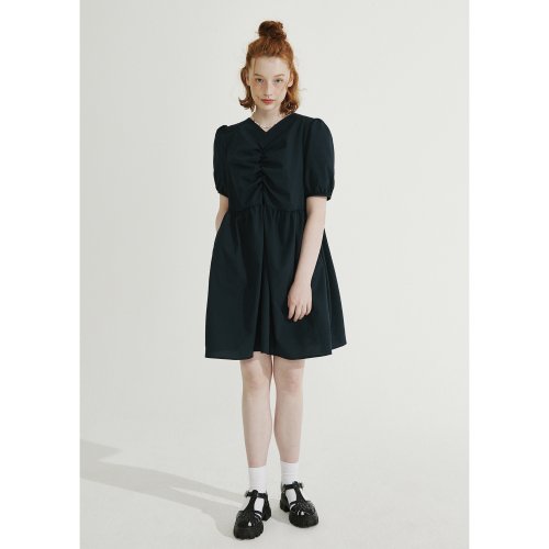 브이넥 셔링 미니 원피스 [다크그린]