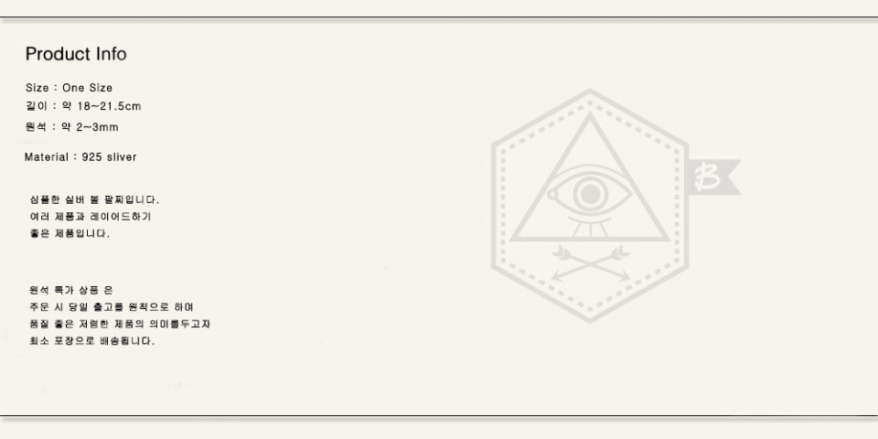 고급소재와, Silver 925 를 사용하여 다양한 스타일과 심플함, 클래식한감성, 빈티지한 느낌을 선보이는 브랜드 입니다.