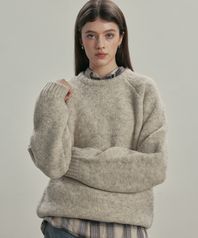 (UNIXSEX)부클 래글런 크롭 라운드 니트 OATMEAL