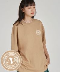 에이피 스포티 엠블럼 라운드 넥 15수 면 반팔 티셔츠_베이지