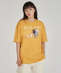 리얼주 플라워 포메 라운드 넥 15수 면 반팔 티셔츠_체다