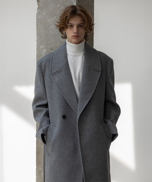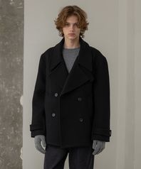 리브 피크드 라펠 울 더블 코트 [블랙]