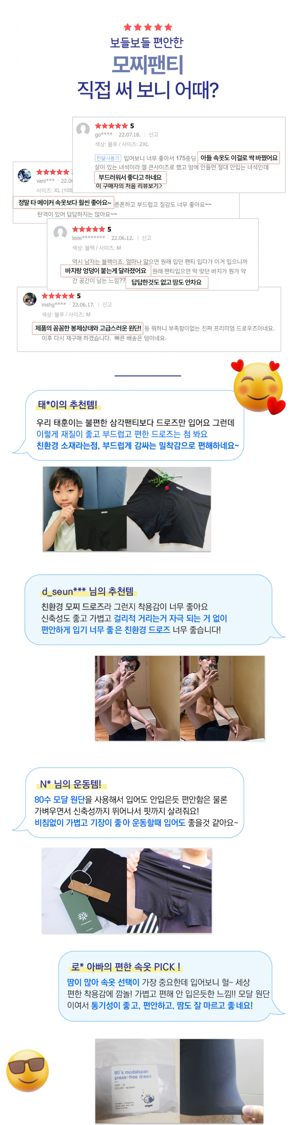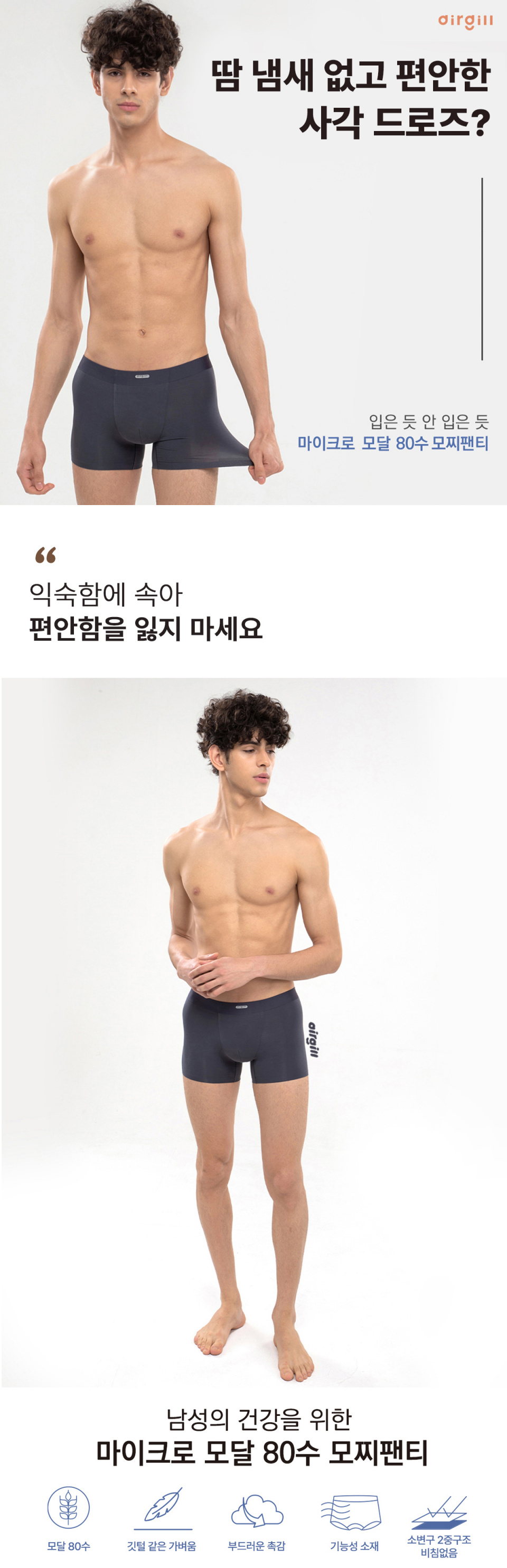 남성 모찌팬티 모달 스판 사각 드로즈 기능성 팬티