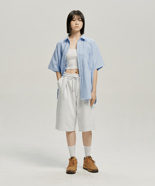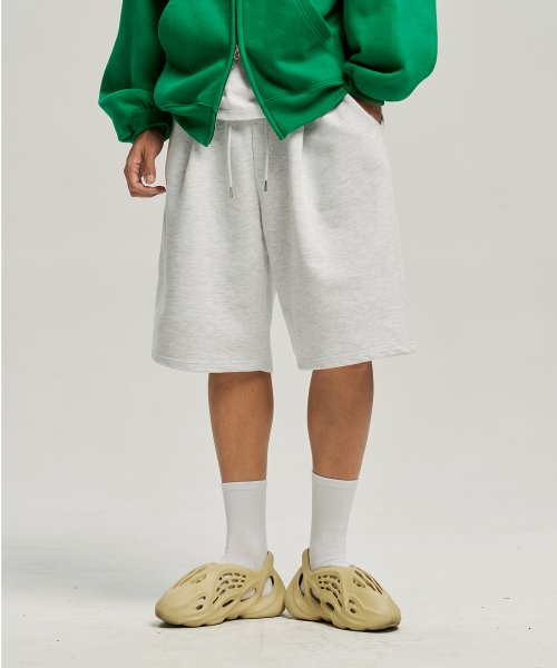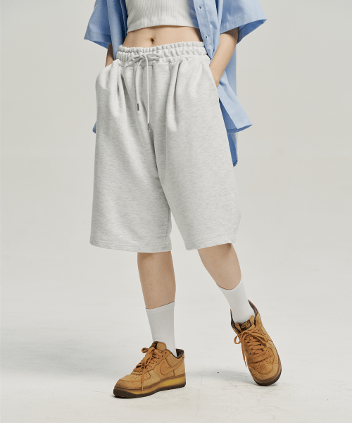 원턱 버뮤다 스웨트 반바지 - 멜란지그레이