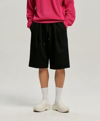 원턱 버뮤다 스웨트 반바지 - 블랙
