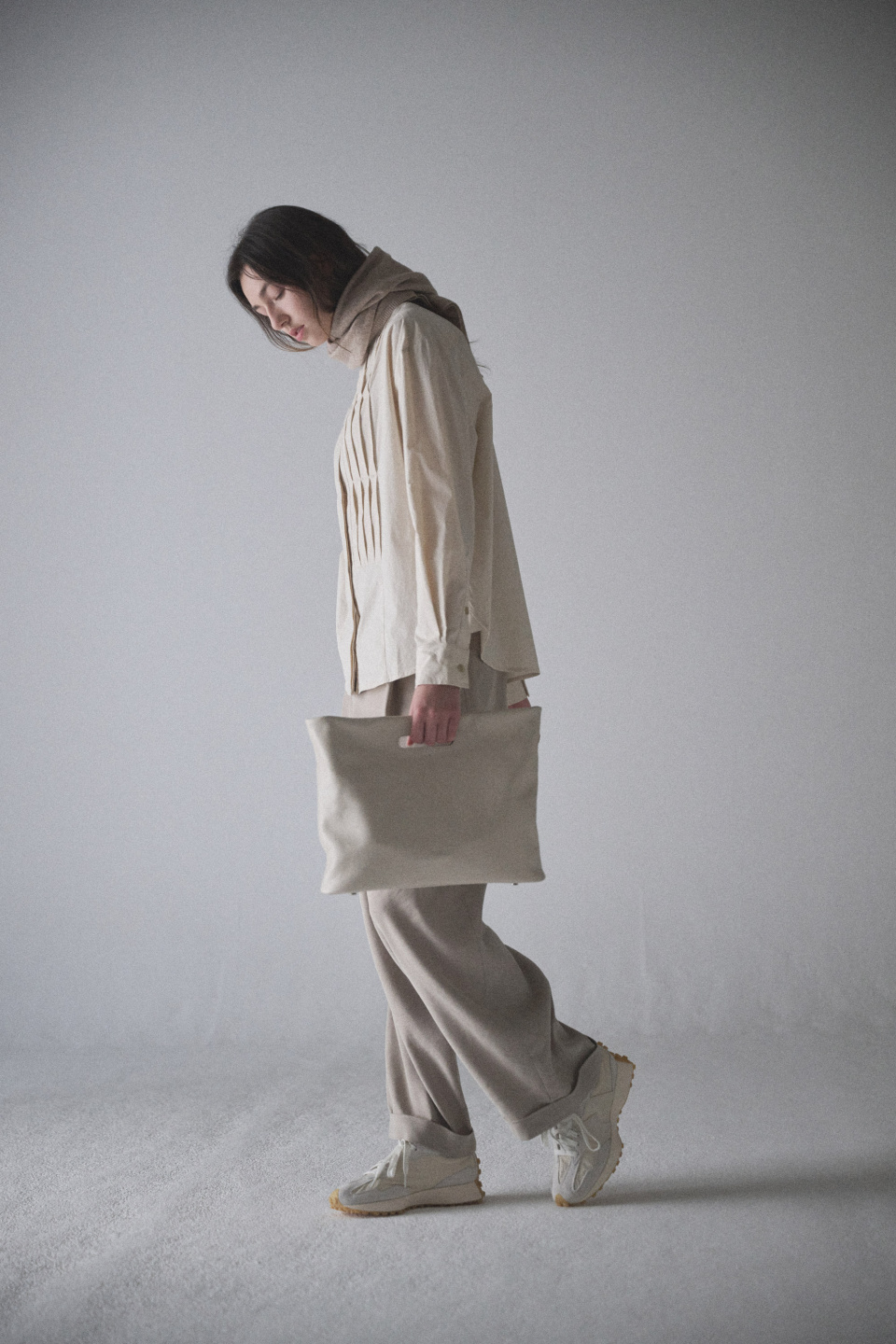 자석 여밈으로 마무리되어 있으며 크로스 스트랩은 탈착이 가능합니다.