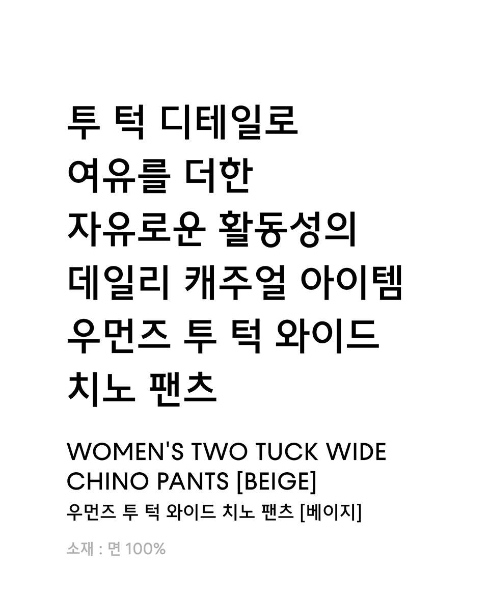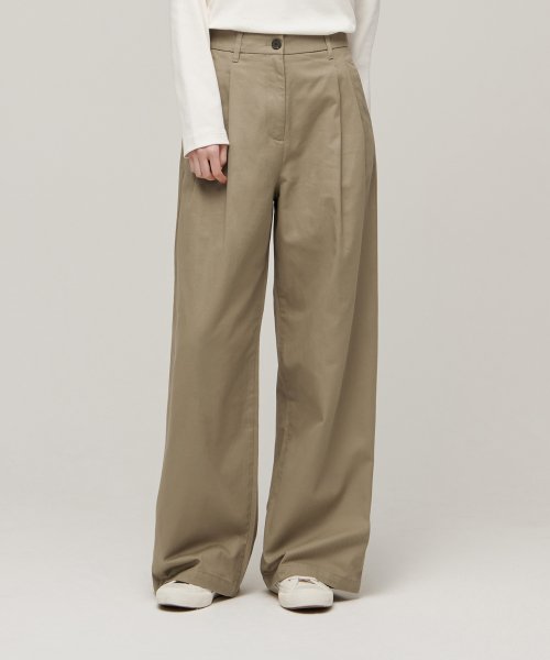 우먼즈 투 턱 와이드 치노 팬츠 [베이지]