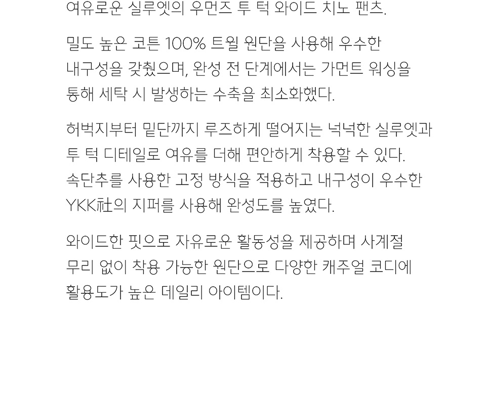 우먼즈 투 턱 와이드 치노 팬츠 [크림]