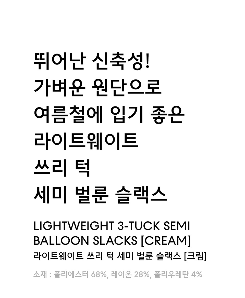 라이트웨이트 쓰리 턱 세미 벌룬 슬랙스 [크림]