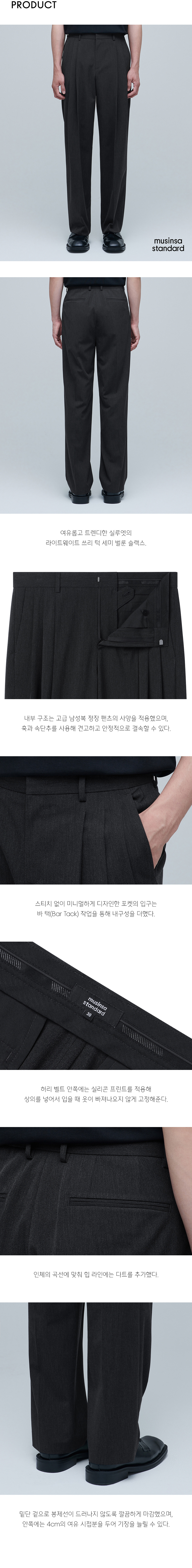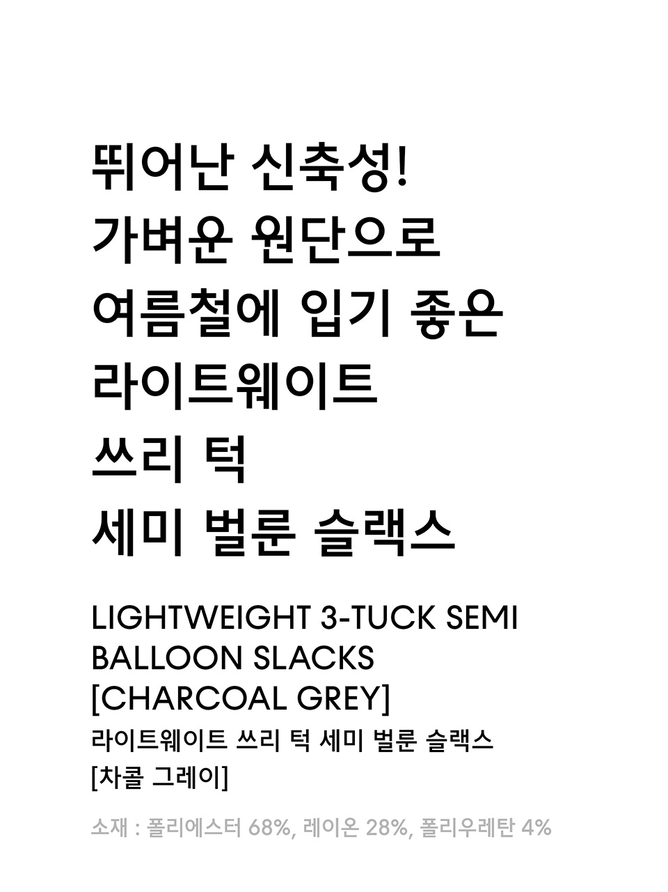 라이트웨이트 쓰리 턱 세미 벌룬 슬랙스 [차콜 그레이]