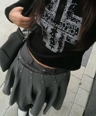 원드랍 플리츠 레이어드 스커트 차콜