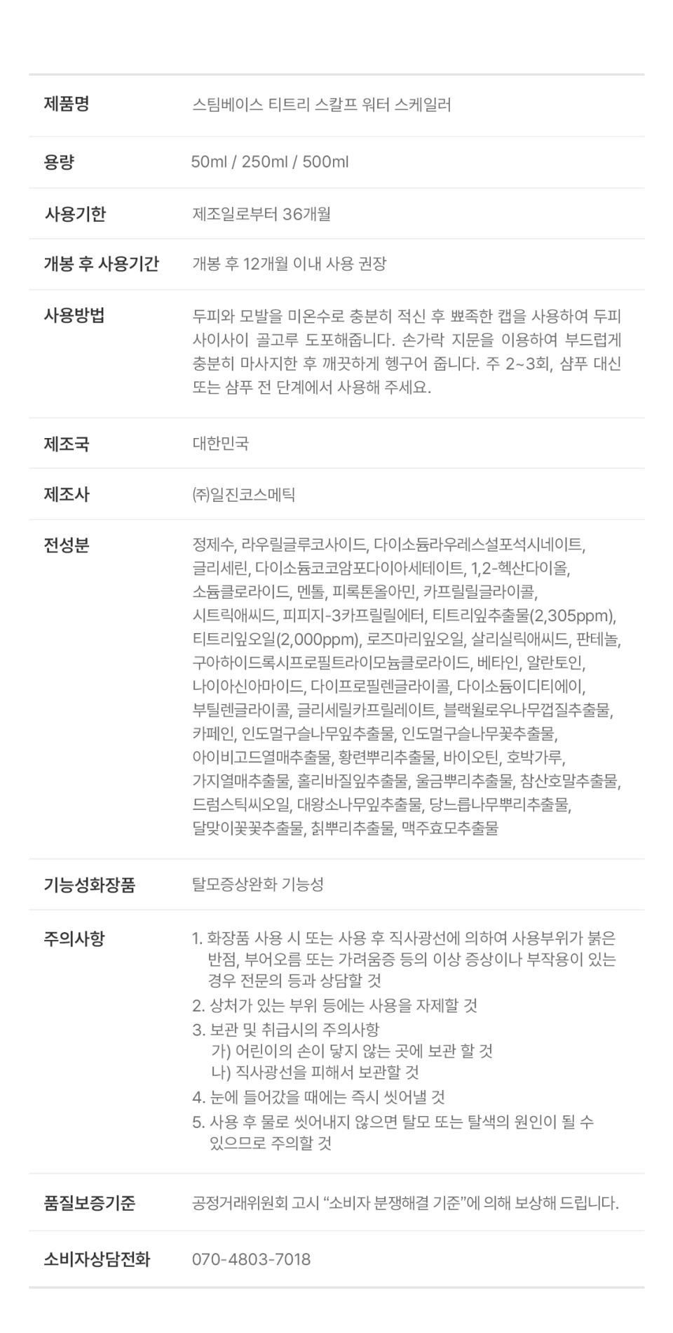 정수리 냄새 고민해결 두피각질 티트리 스케일러 250ml