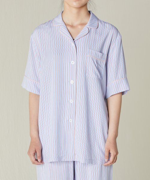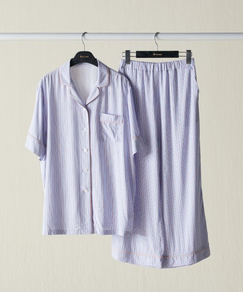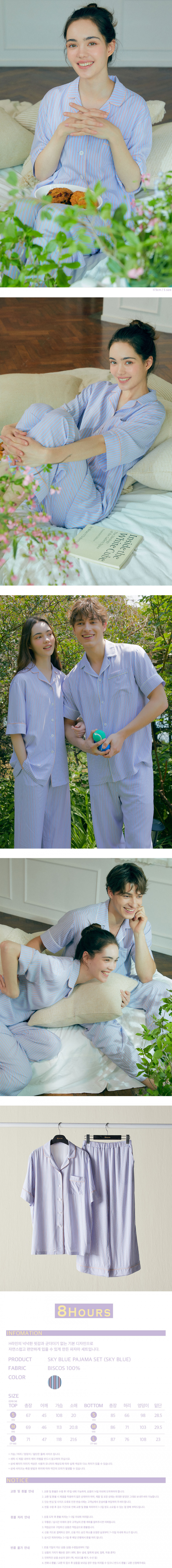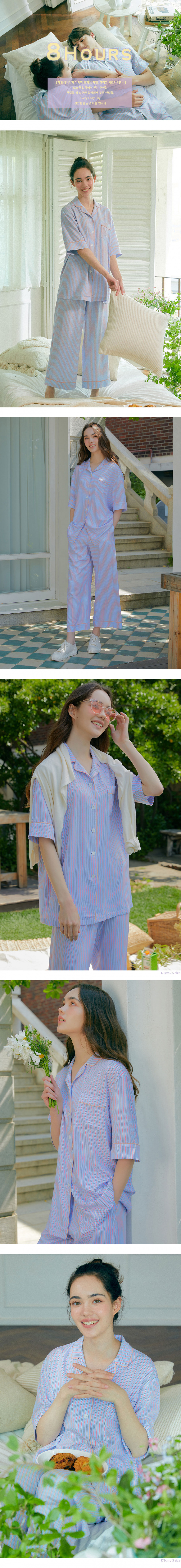 (W) 핀 스트라이프 숏 슬리브 세트 (스카이 블루)