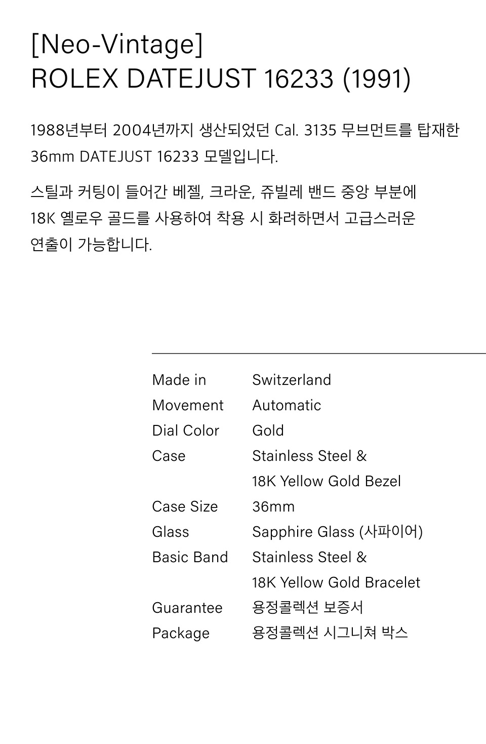 [Neo-Vintage] 데이트저스트 16233 (1991년식)