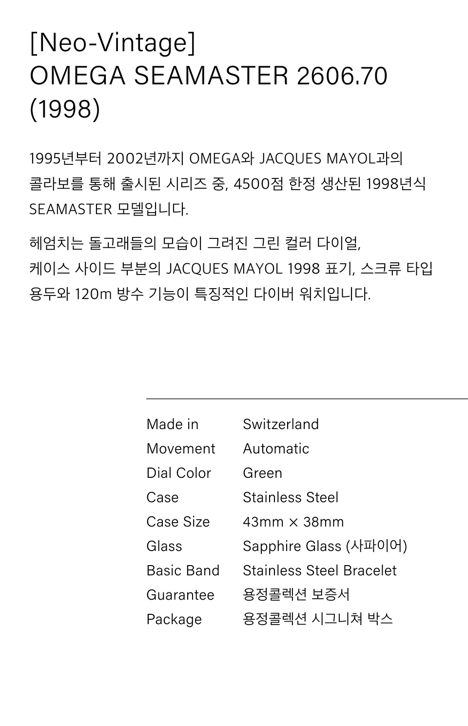 [Neo-Vintage] 씨마스터 2606.70 (1998년식)