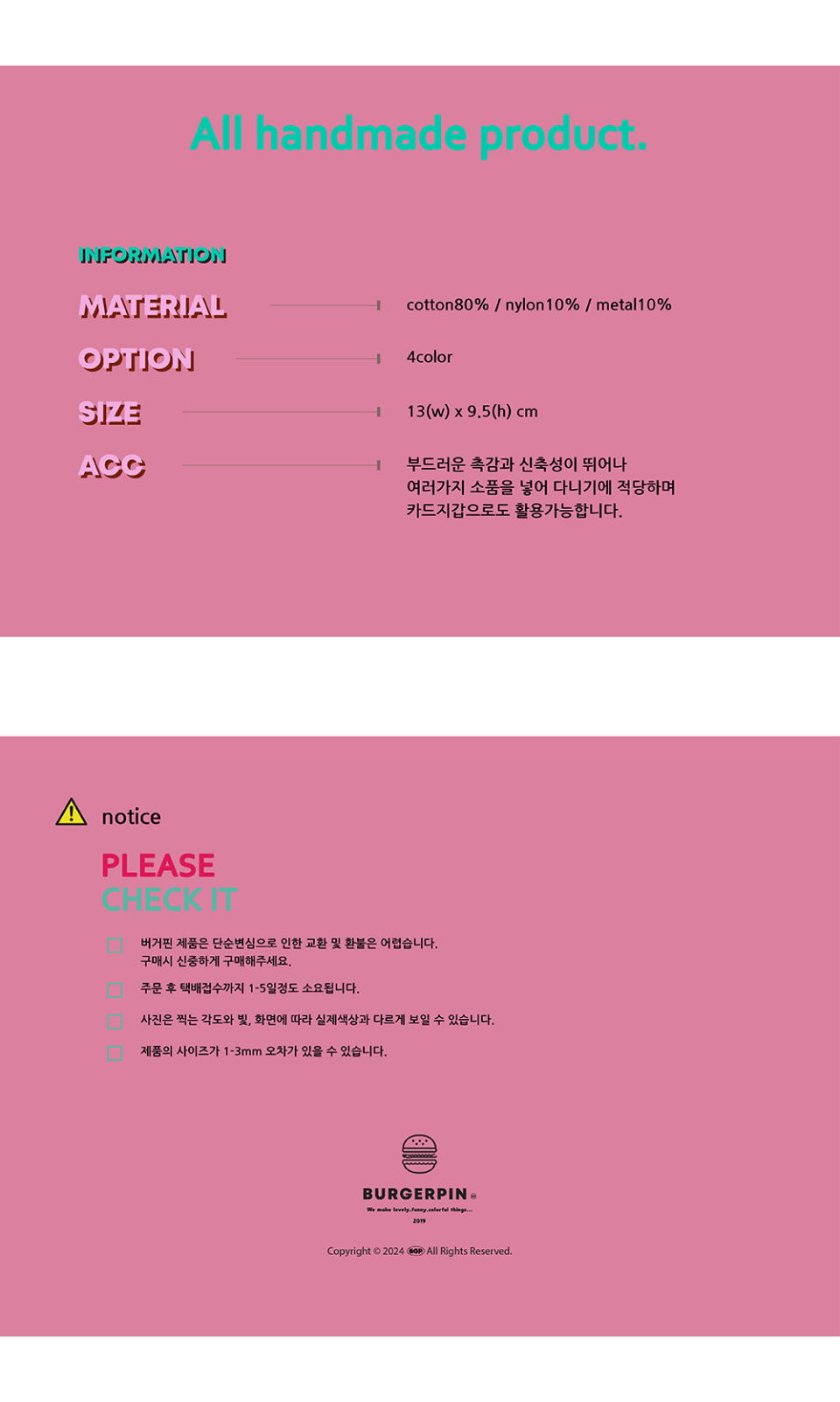 버거핀(BURGERPIN)은 러블리하고 퍼니한 일상 및 패션 소품과 디자인 아이템을 선보이는 브랜드입니다.