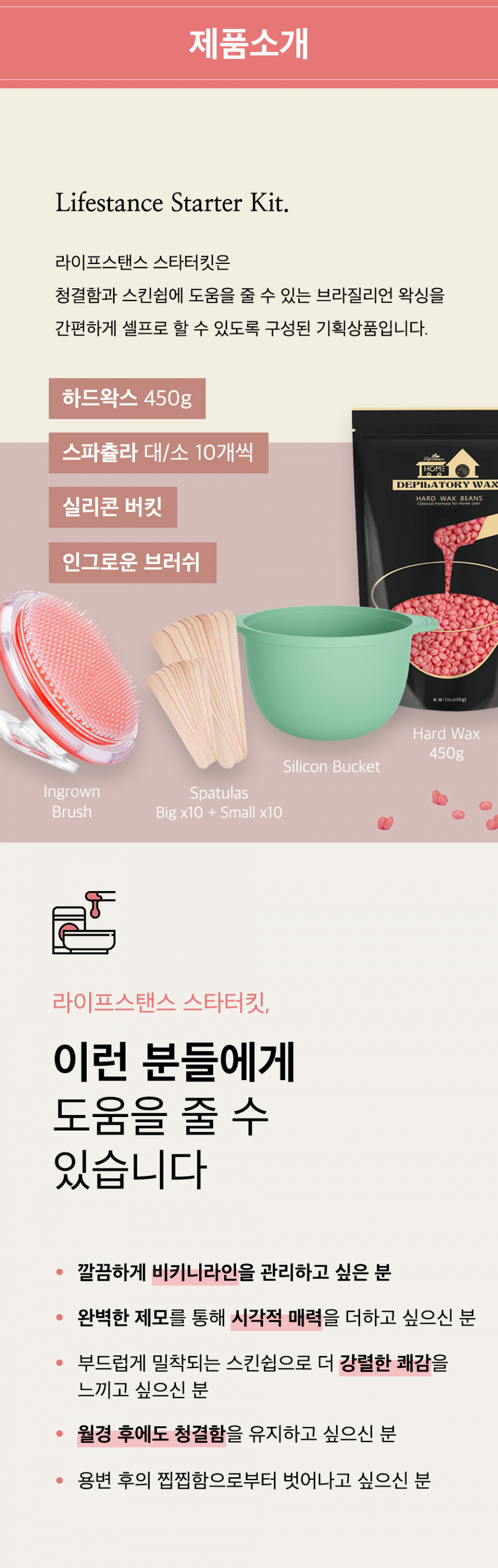 라이프스탠스 하드왁스 450g 스타터킷 로즈 + 인그로운 브러쉬