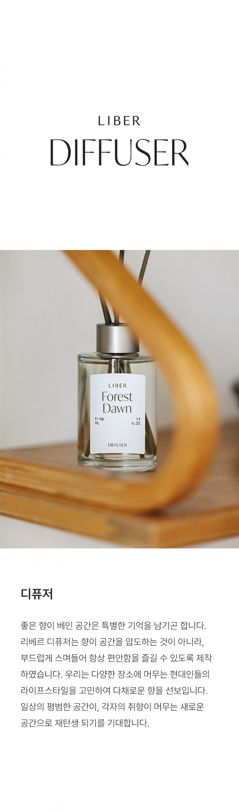 리베르(LIBER)는 2017년에 설립되어, 경쾌한 향기를 기반으로 도시 속 위트와 영감을 만드는 홈 프래그런스 브랜드입니다.