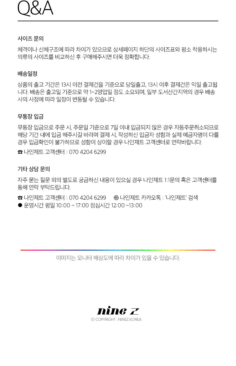 나인제트(NINEZ)는 운동과 패션의 경계를 두지 않고, 단지 좋은 옷이 좋은 하루를 만든다는 믿음으로 다양한 라이프 스타일 웨어를 전개하는 브랜드입니다.