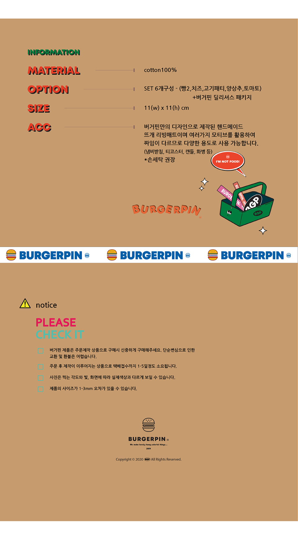 버거핀(BURGERPIN)은 러블리하고 퍼니한 일상 및 패션 소품과 디자인 아이템을 선보이는 브랜드입니다.