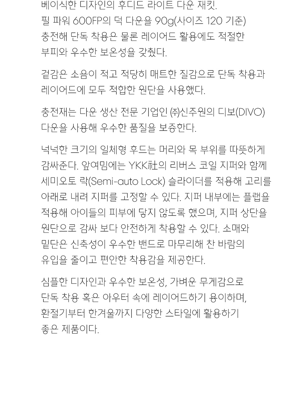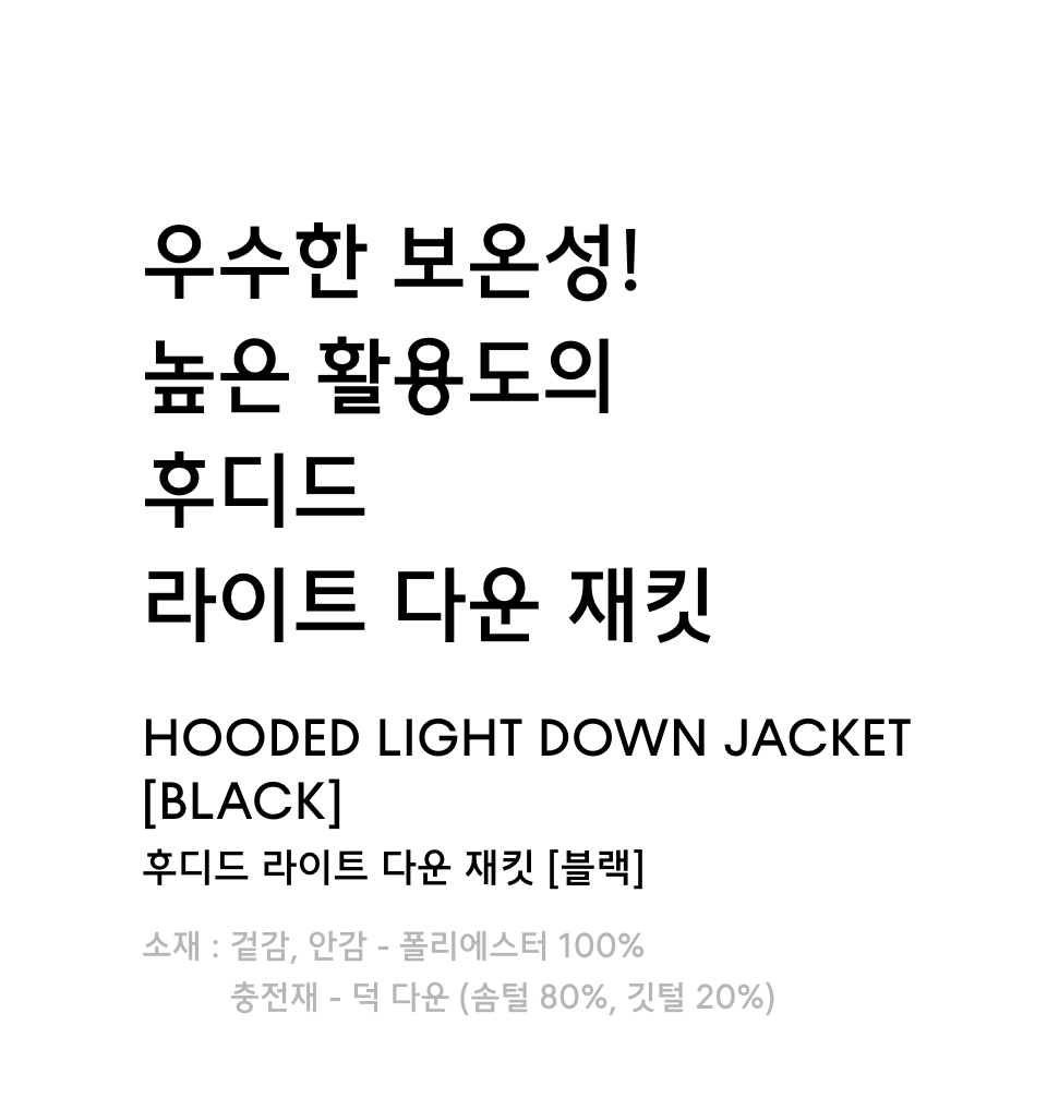 후디드 라이트 다운 재킷 [블랙]