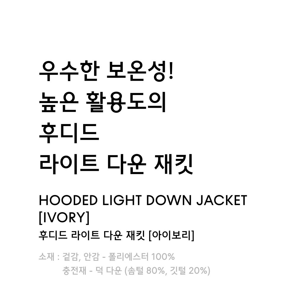 후디드 라이트 다운 재킷 [아이보리]