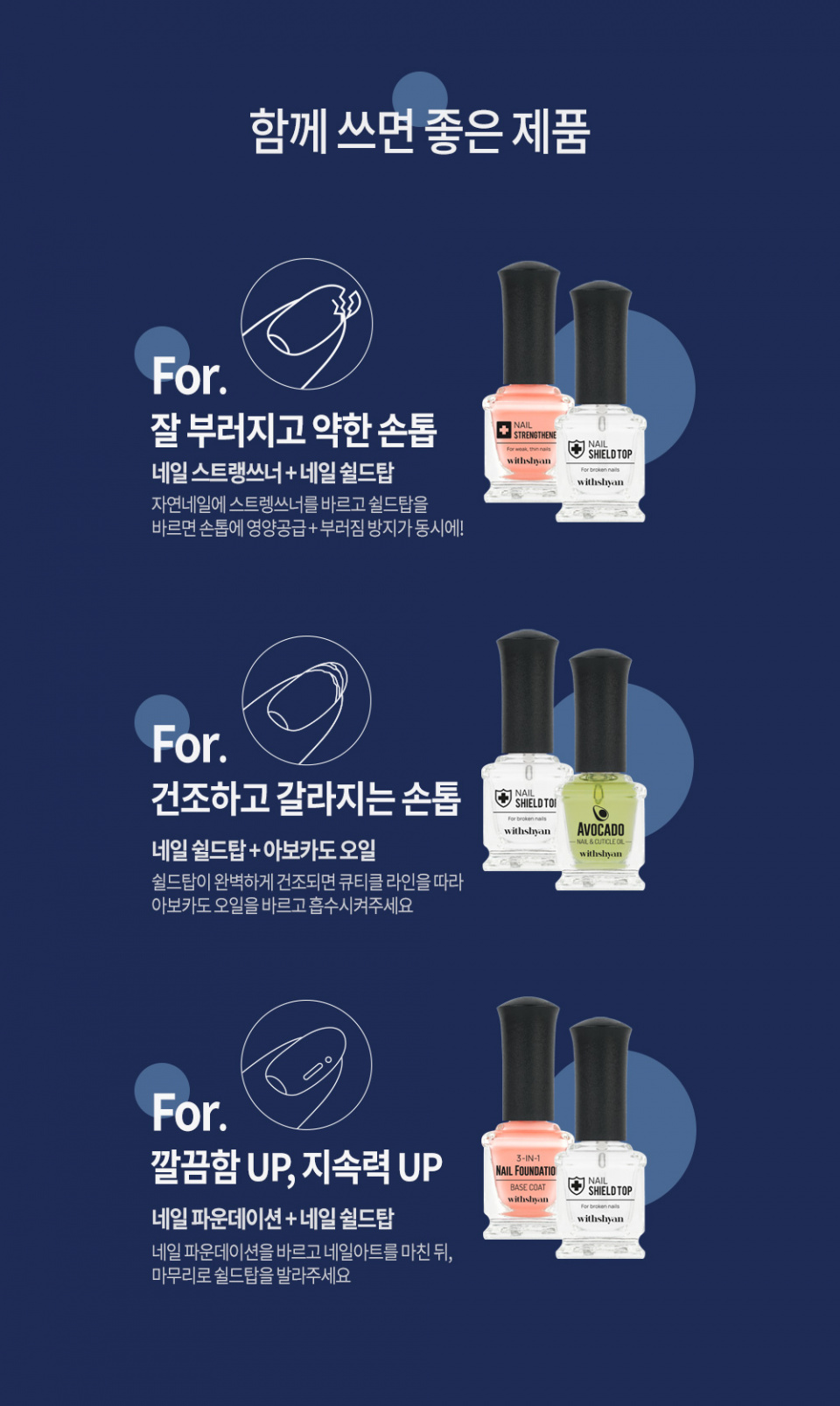 위드샨(WITHSHYAN)은 60초 만에 마르는 매니큐어 등 누구나 쉽고 편안하게 사용할 수 있는 셀프 네일 제품을 선보입니다.