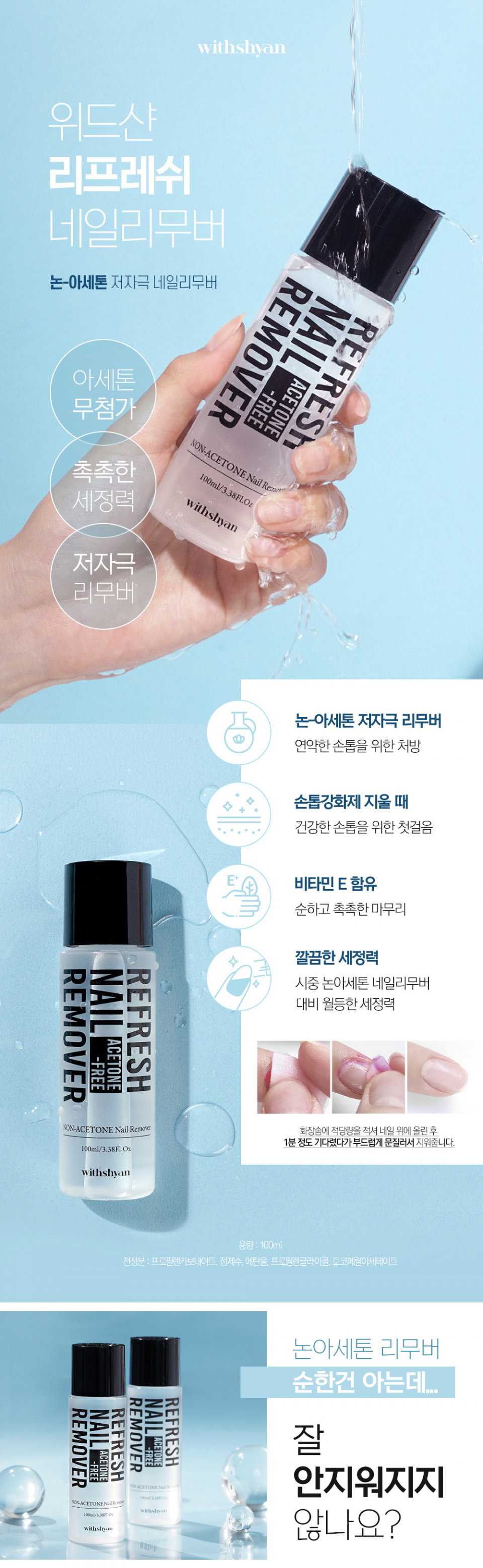 위드샨(WITHSHYAN)은 60초 만에 마르는 매니큐어 등 누구나 쉽고 편안하게 사용할 수 있는 셀프 네일 제품을 선보입니다.
