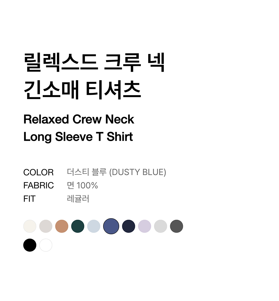 릴렉스드 크루 넥 긴소매 티셔츠 [더스티 블루]