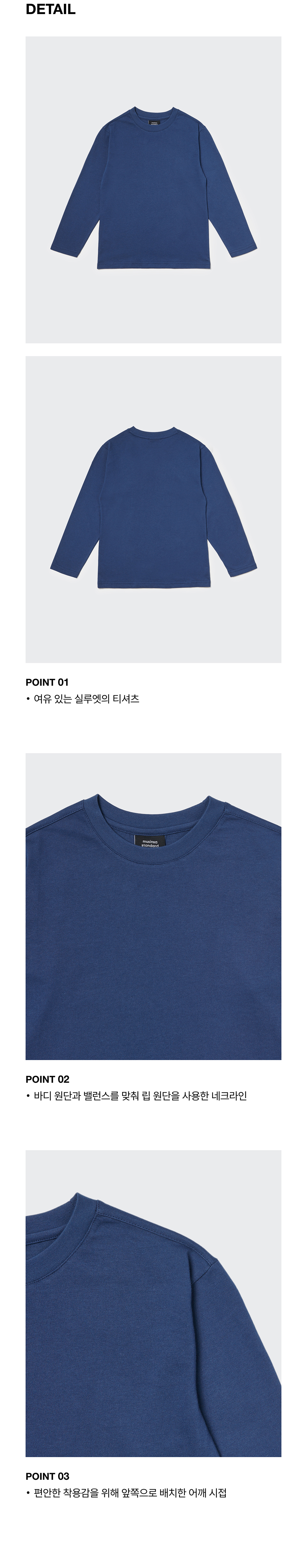 릴렉스드 크루 넥 긴소매 티셔츠 [블루 그레이]