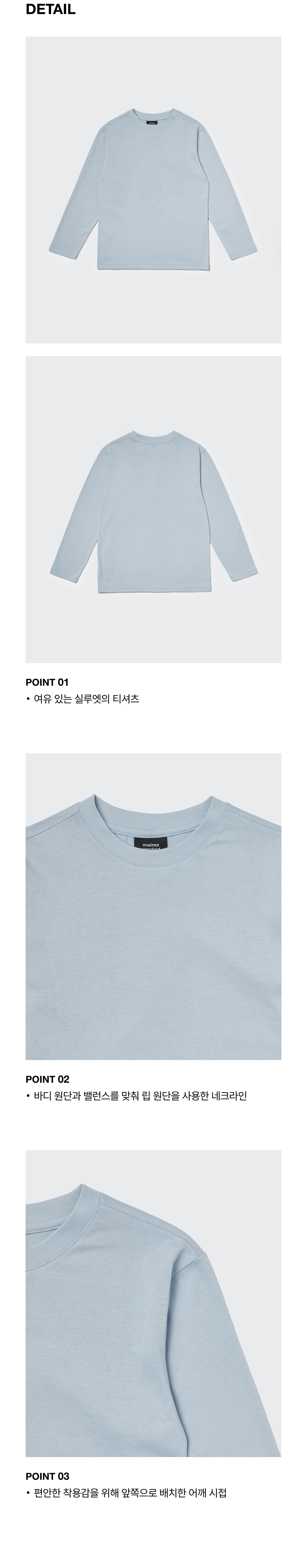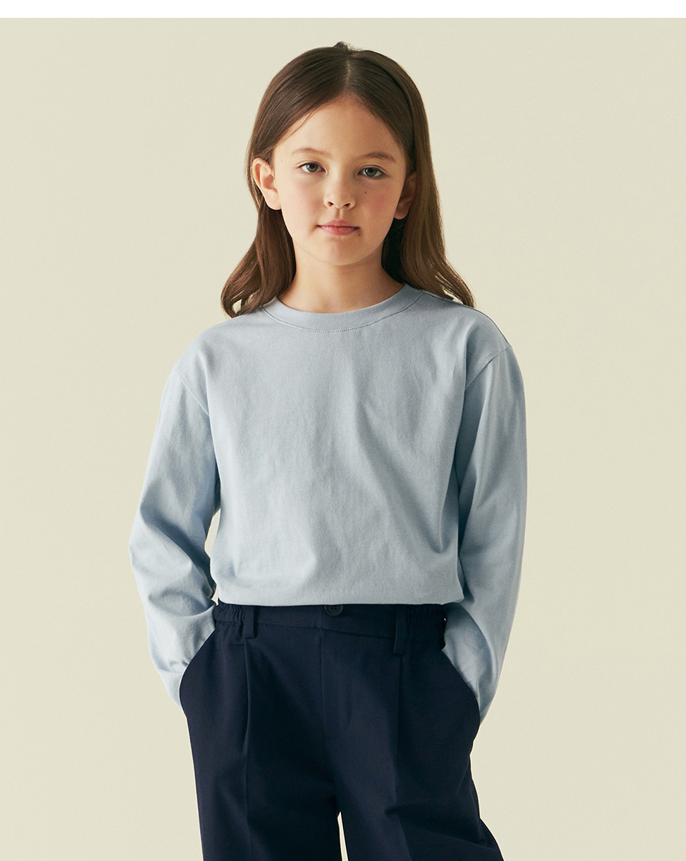 릴렉스드 크루 넥 긴소매 티셔츠 [블루 그레이]