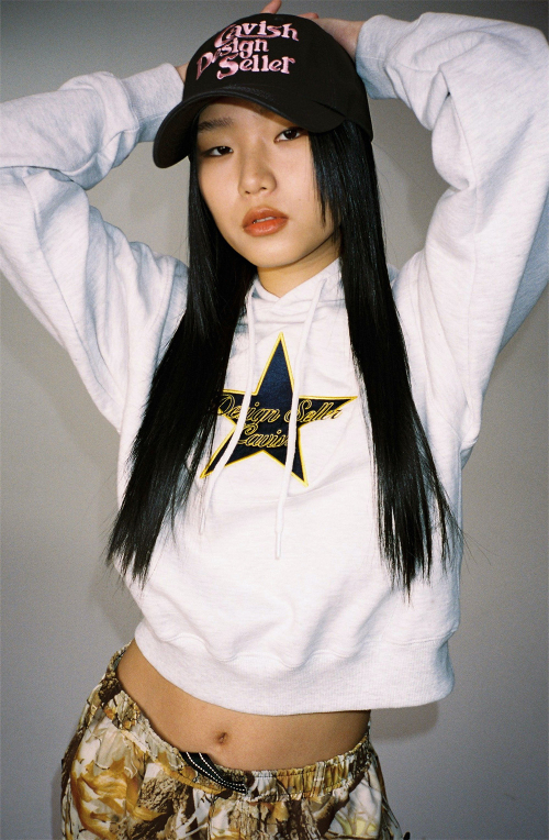 W STAR LOGO CROPPED HOODIE LIGHT GREY(CV2CFFM401A)