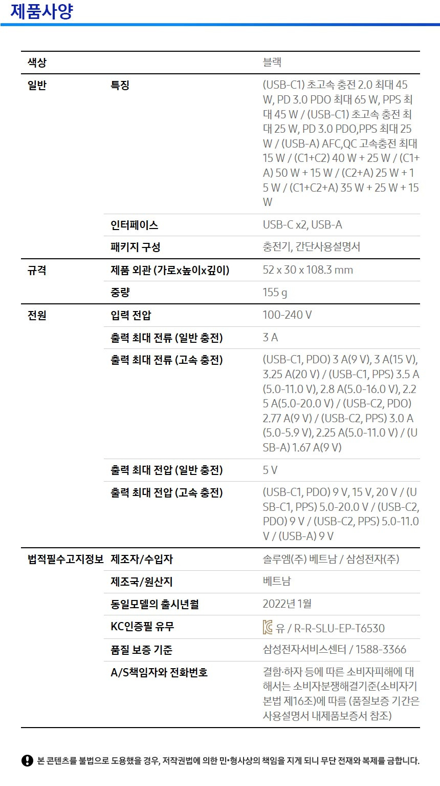 65W 트리오 포트 PD 충전기 EP-T6530