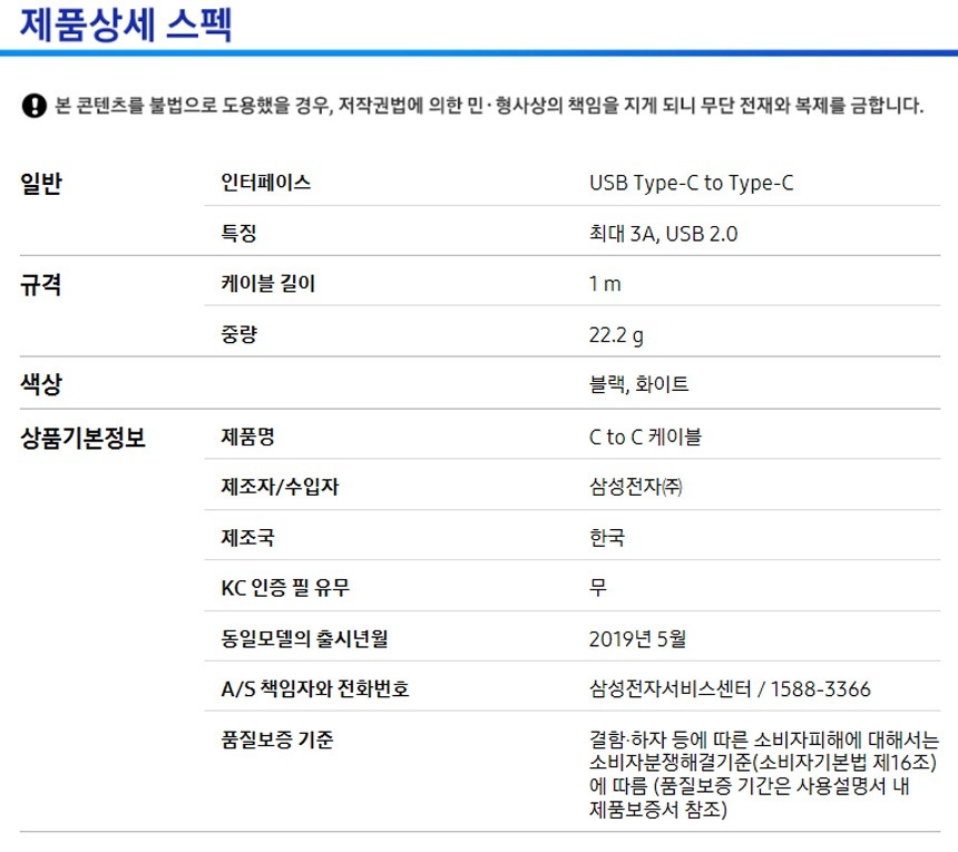 갤럭시 25W 초고속 충전 C타입 케이블 EP-DX310