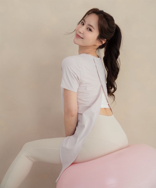 나일론 백 슬릿 반팔 티셔츠(페일핑크)