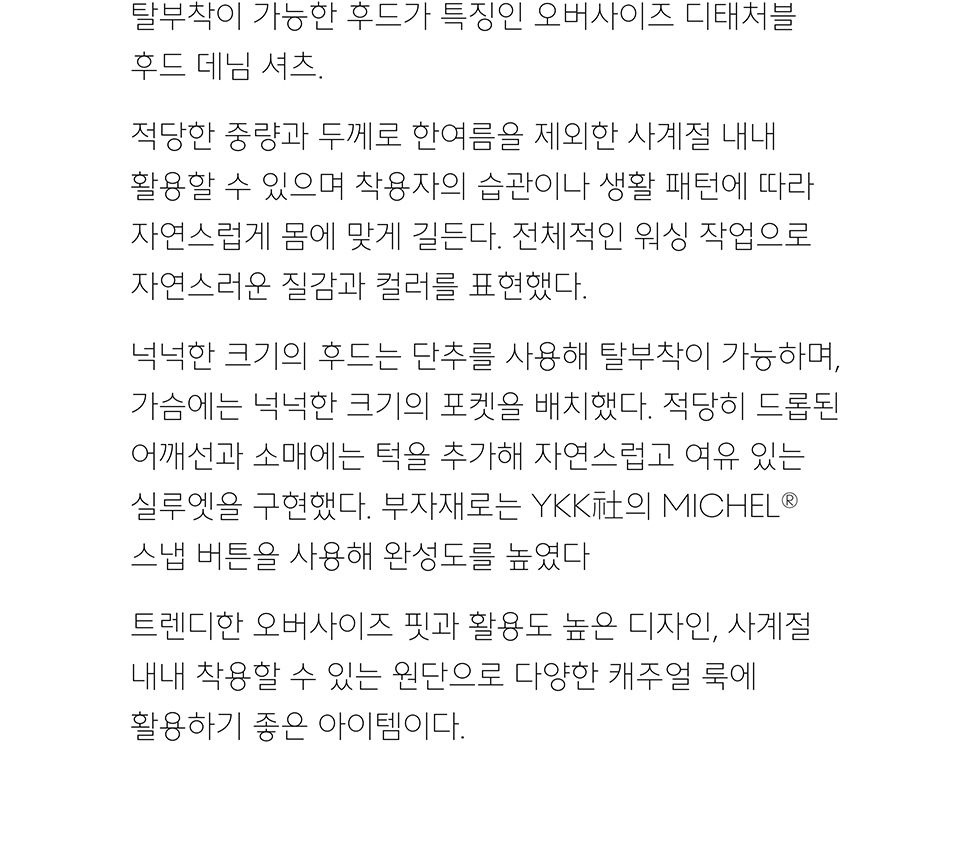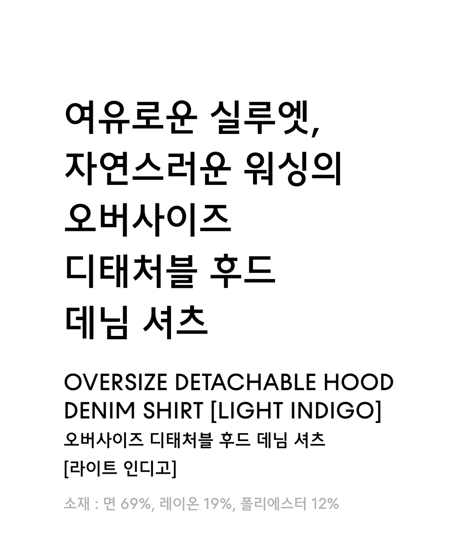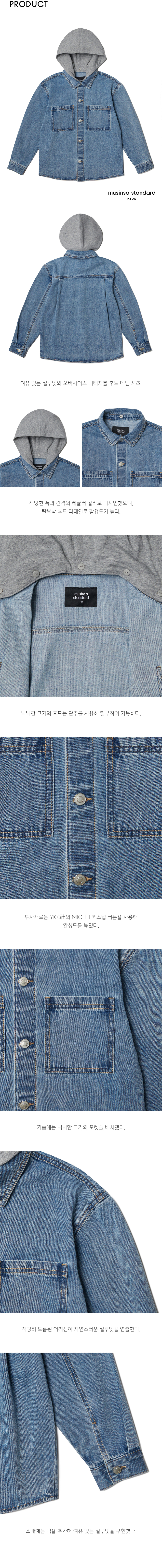오버사이즈 디태처블 후드 데님 셔츠 [라이트 인디고]