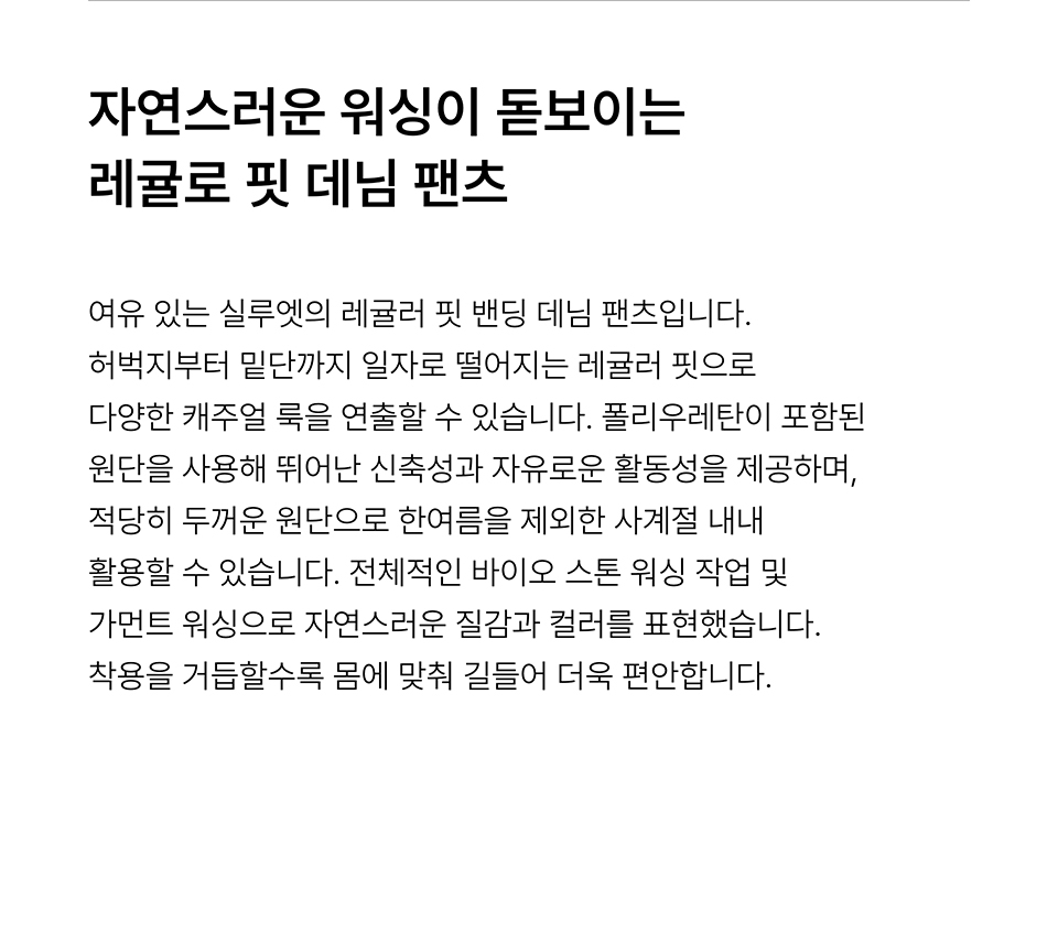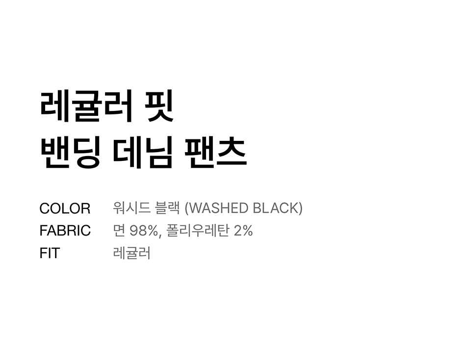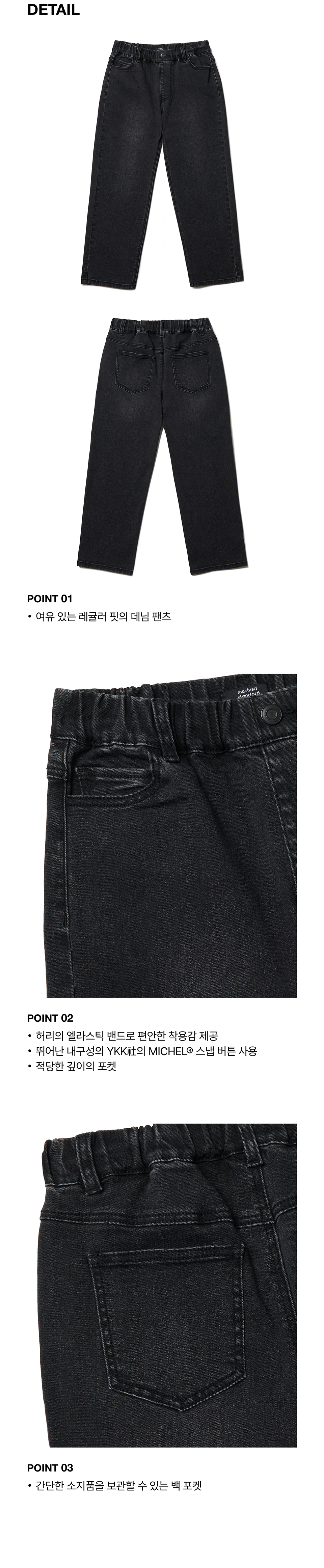 레귤러 핏 밴딩 데님 팬츠 [워시드 블랙]
