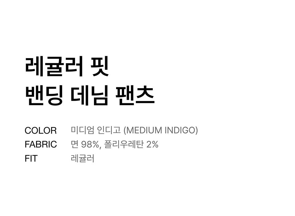 레귤러 핏 밴딩 데님 팬츠 [미디엄 인디고]