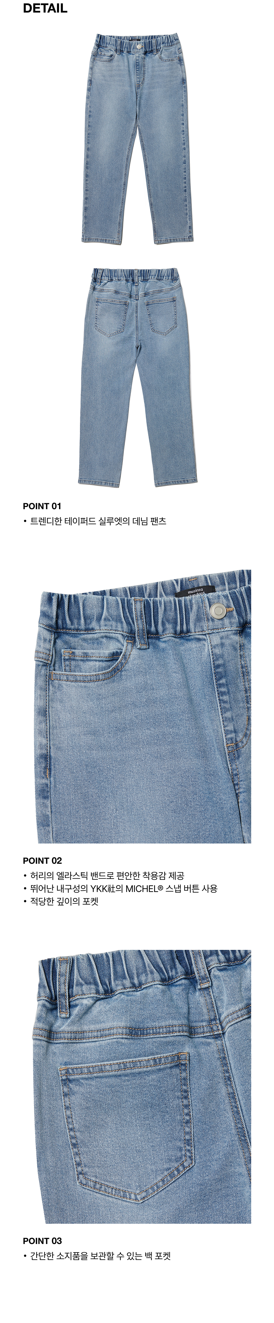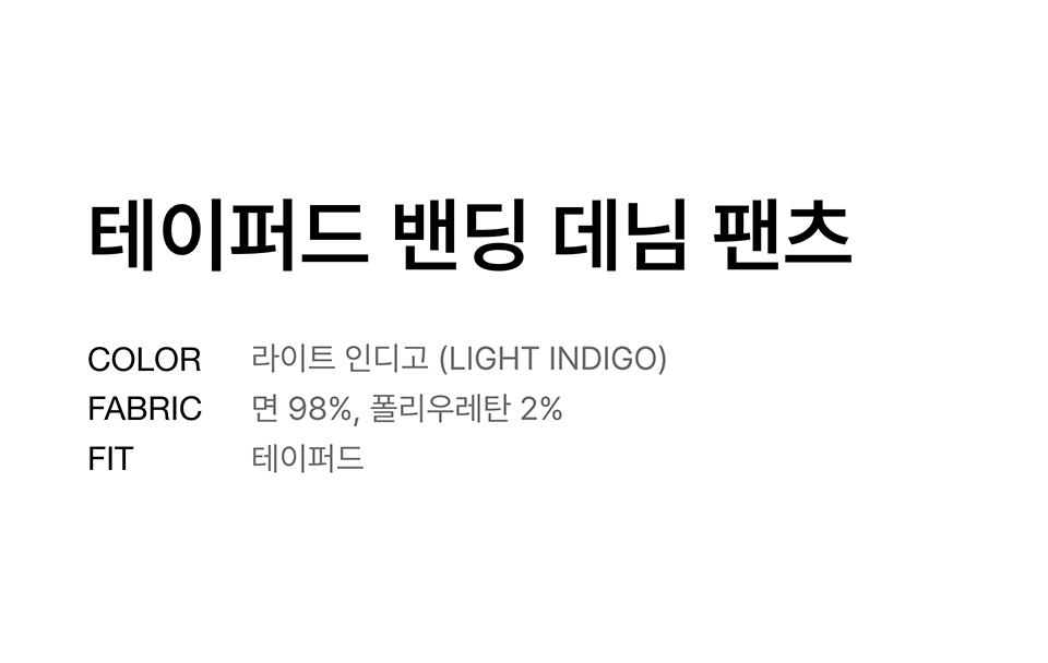 테이퍼드 밴딩 데님 팬츠 [라이트 인디고]
