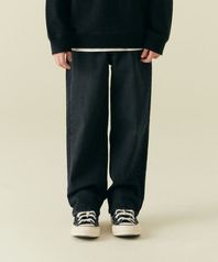 레귤러 핏 밴딩 데님 팬츠 [워시드 블랙]