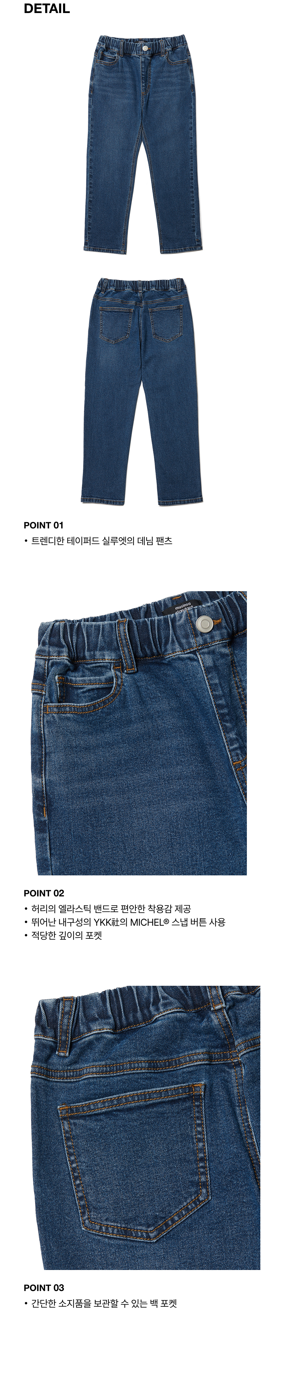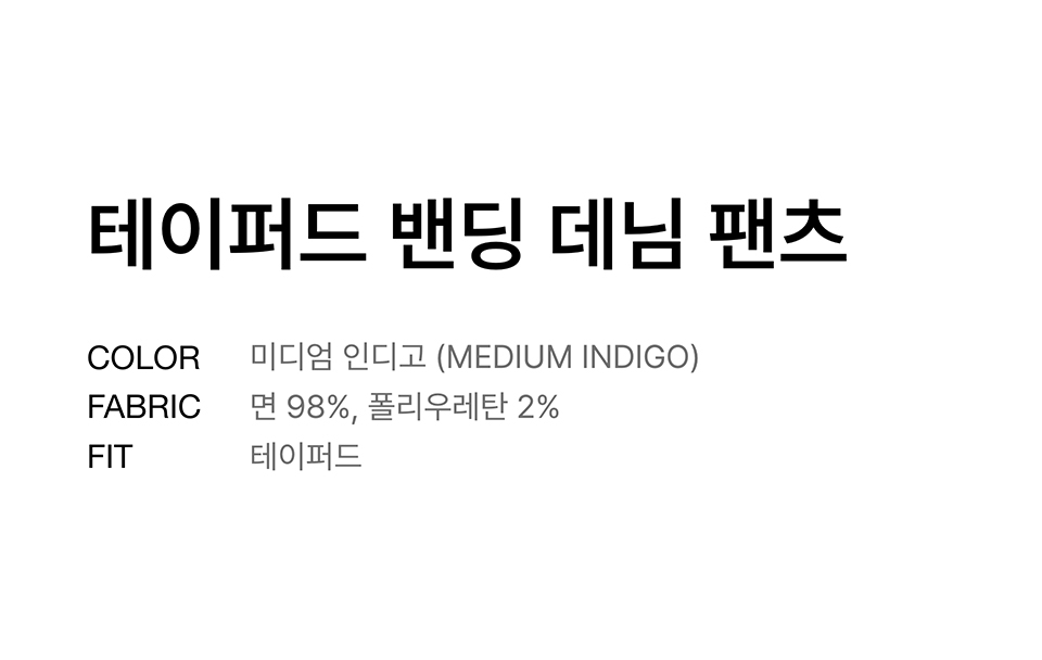 테이퍼드 밴딩 데님 팬츠 [미디엄 인디고]