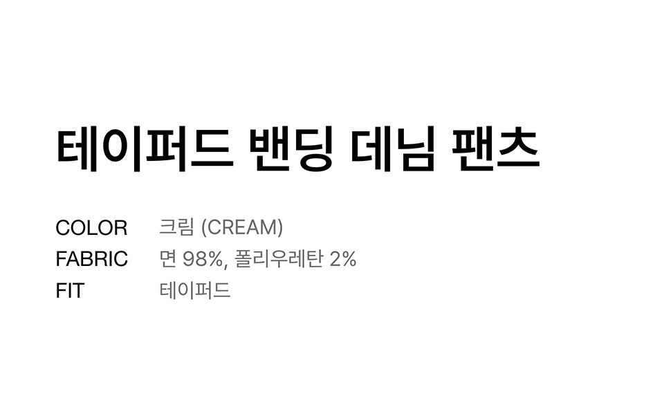 테이퍼드 밴딩 데님 팬츠 [크림]
