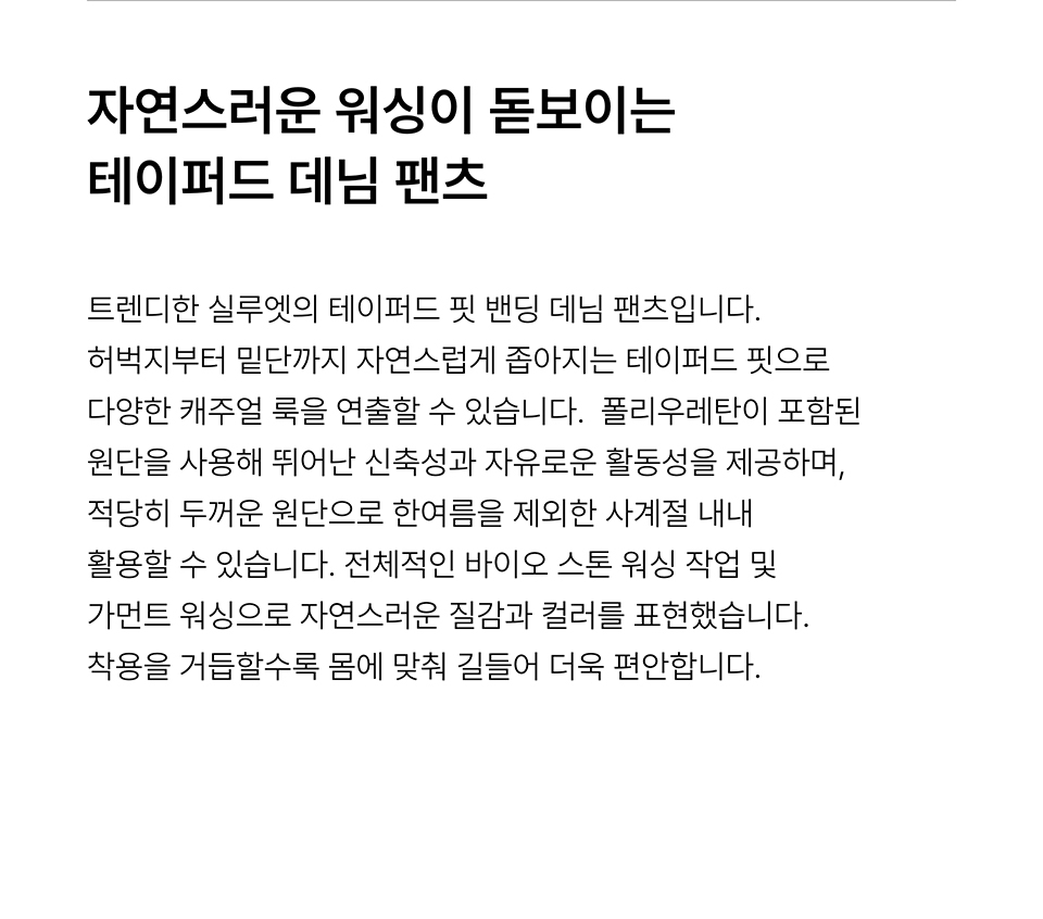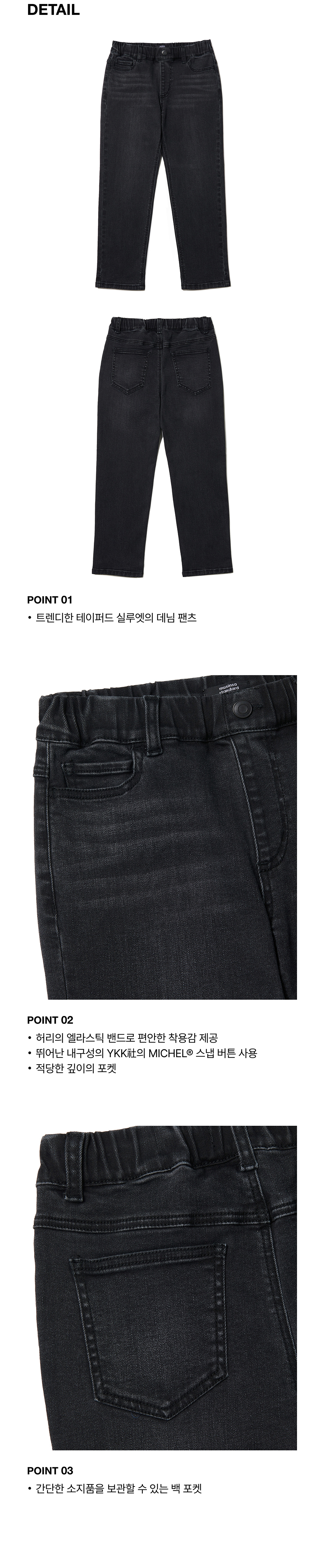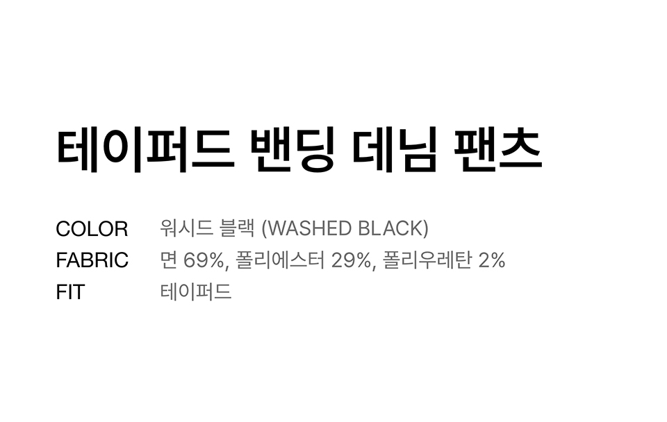 테이퍼드 밴딩 데님 팬츠 [워시드 블랙]