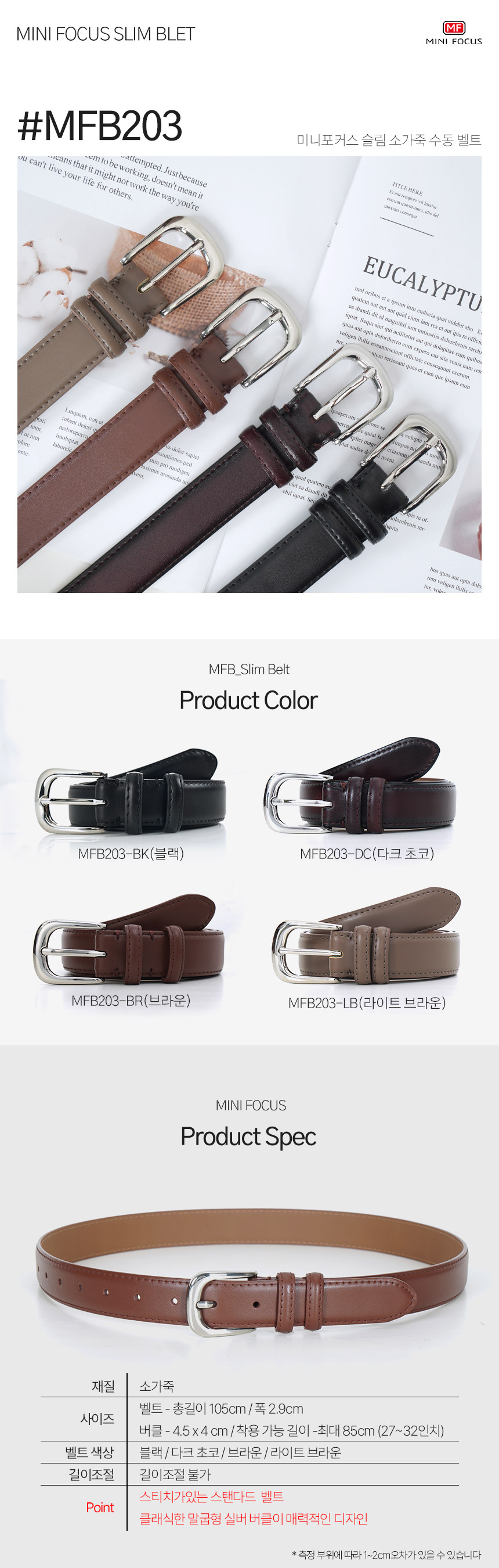소가죽 캐주얼 남성 수동 슬림 벨트 MFB203