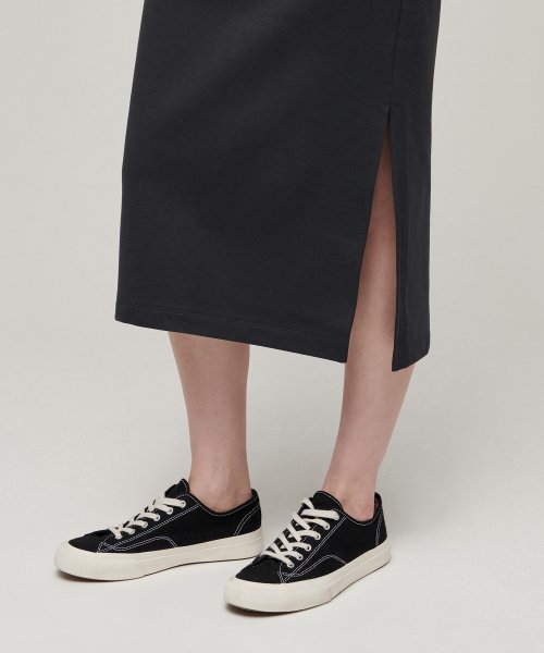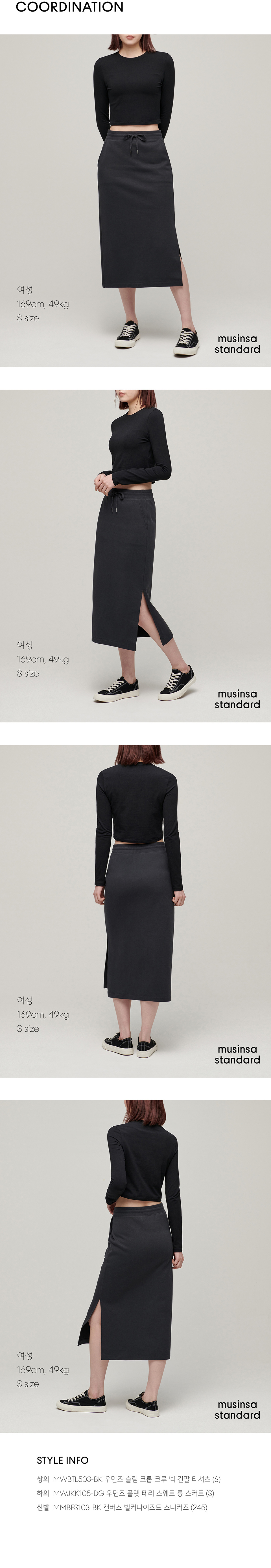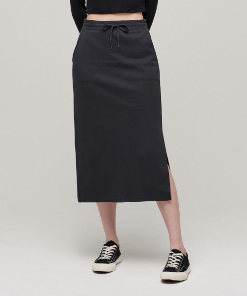 우먼즈 플랫 테리 스웨트 롱 스커트 [블랙]