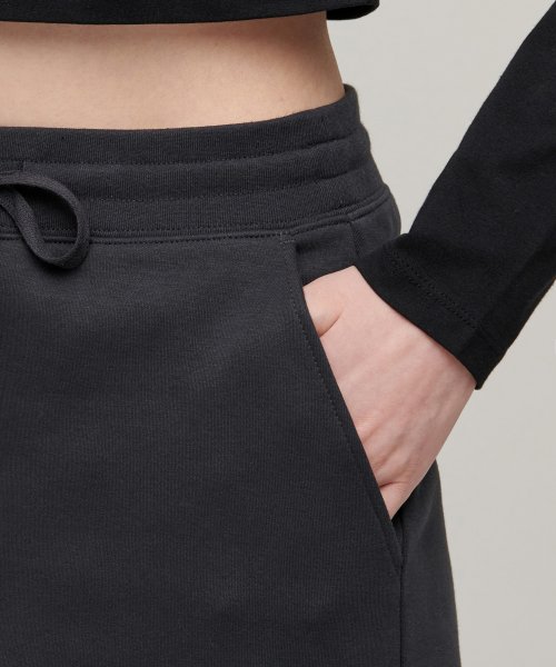 우먼즈 플랫 테리 스웨트 카고 롱 스커트 [블랙]