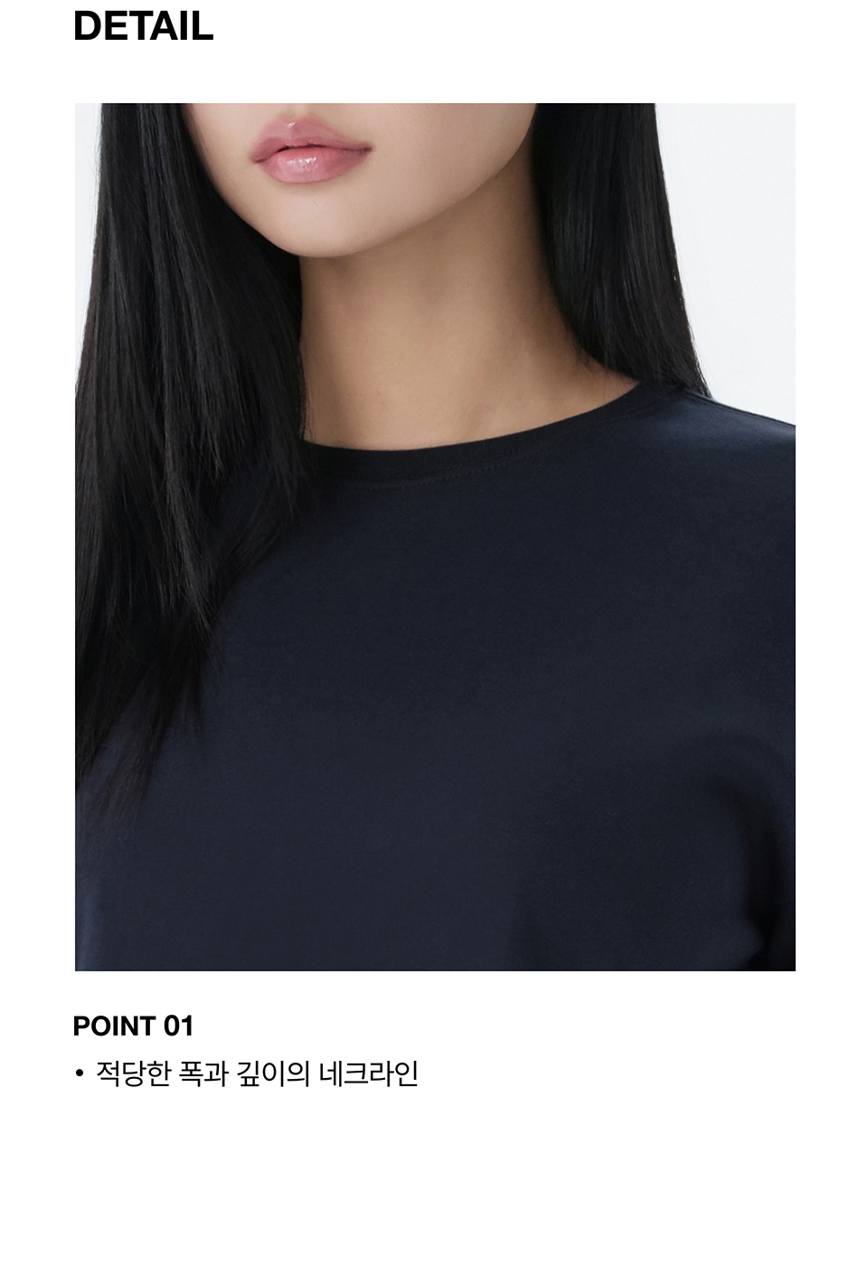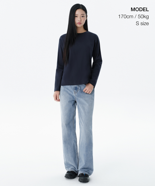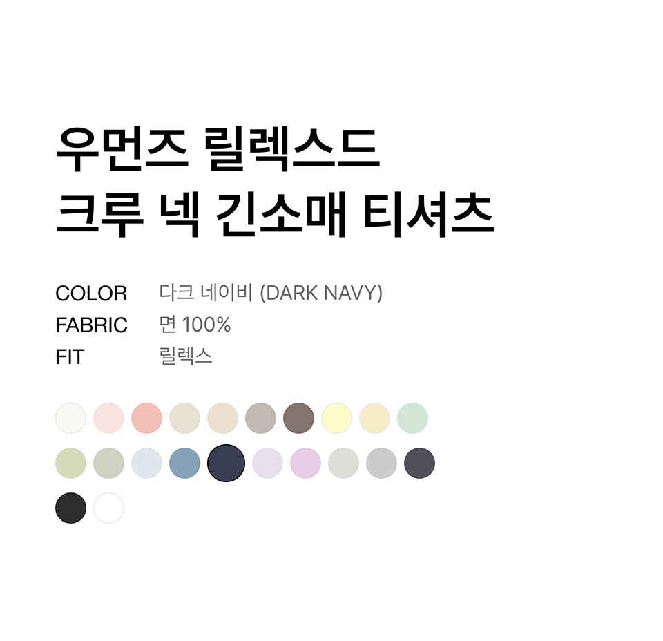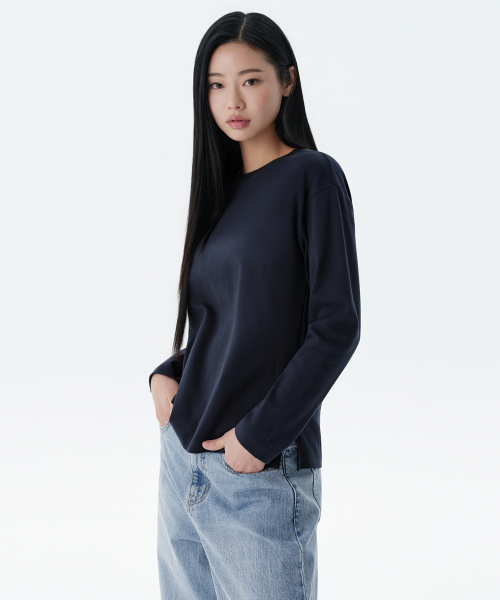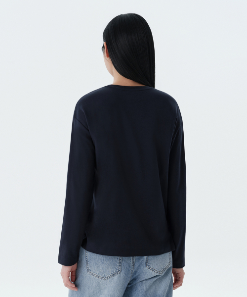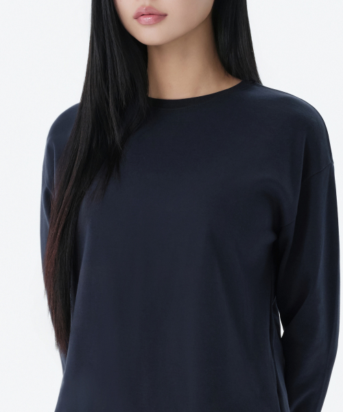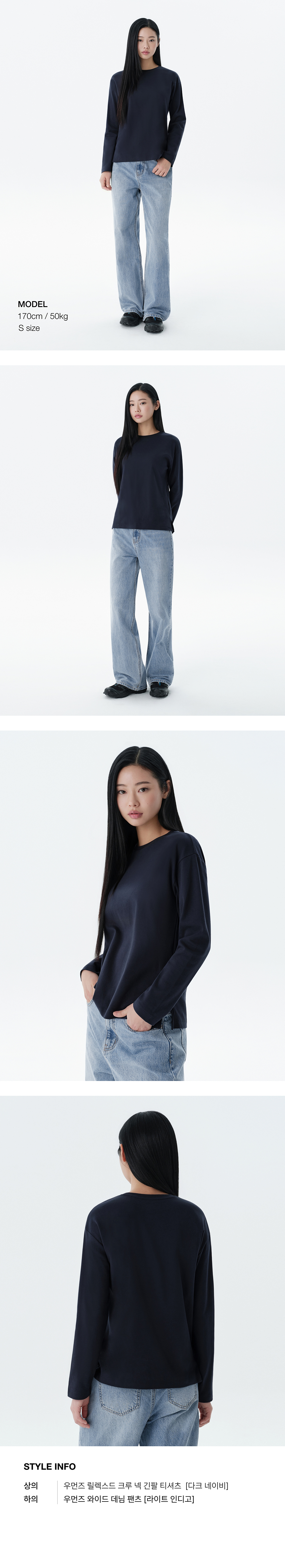 우먼즈 릴렉스드 크루 넥 긴소매 티셔츠 [다크 네이비]